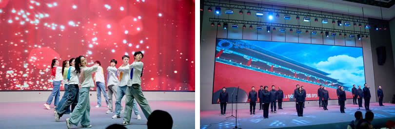 “创新篇”以沉浸式体验引领观众展望未来。集团采购部赵鸿浩独唱《爱拼才会赢》,唱响奋斗者心声;特邀嘉宾倪菁潞、陶文俊的舞蹈《火红的萨日朗》以民族风与现代舞的碰撞点燃全场;热电事业部生技部员工自编自导自演的舞台剧《砺剑征程》,以戏剧化叙事生动呈现团队精神与攻坚历程。